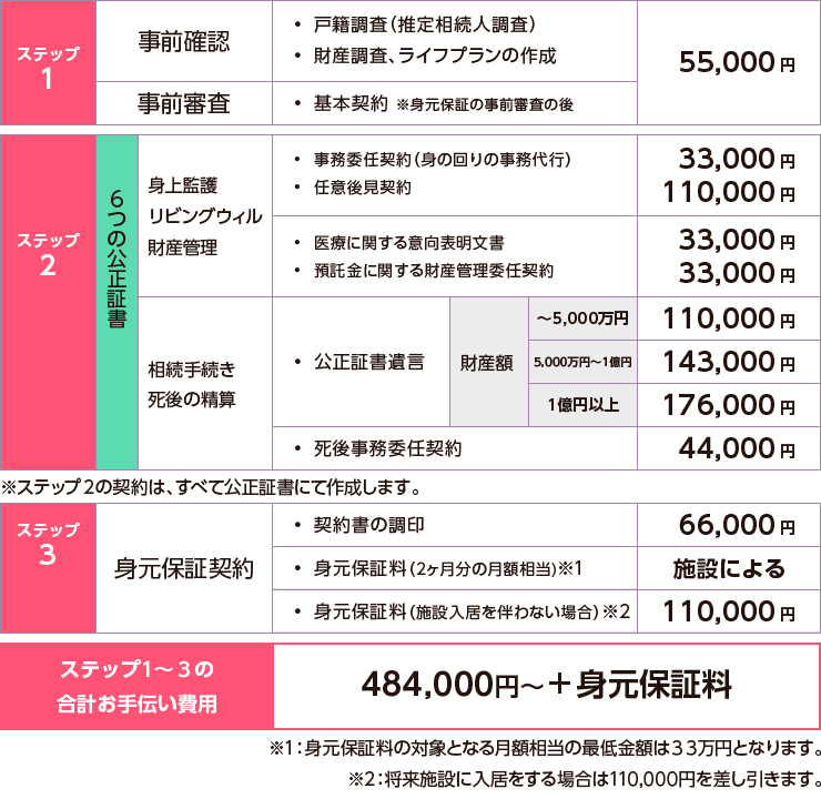 - 公正証書遺言作成業務:100,000円(税込110,000円)