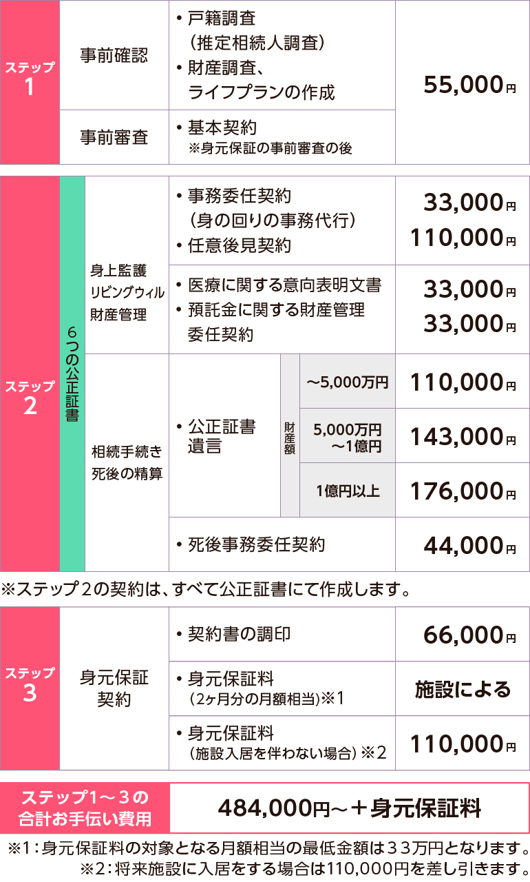 - 上記費用に加えて、財産総額等に応じた公証人手数料が必要となります。